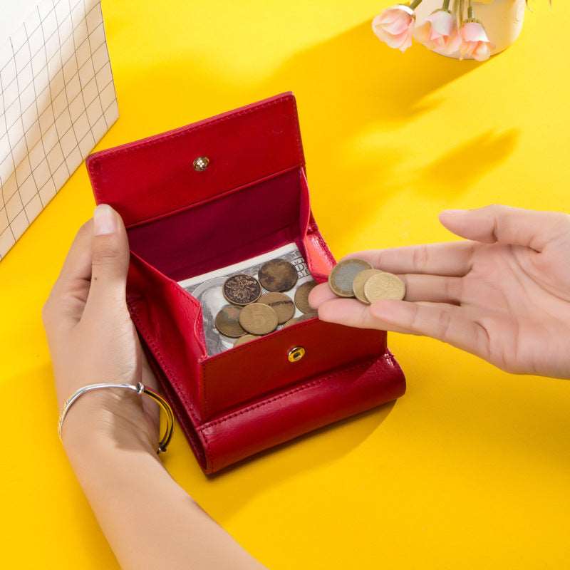 This Women’s Genuine Leather Short Wallet is the perfect accessory for any woman looking for a stylish and functional wallet. Made from high-quality genuine leather. this wallet is durable and long-lasting. The wallet features a 3-fold design with a magnetic buckle for easy opening and closing. The interior of the wallet is well-structured with designated slots for photos. banknotes. cards. and coins. The horizontal shape of the wallet makes it easy to fit into any bag or purse.